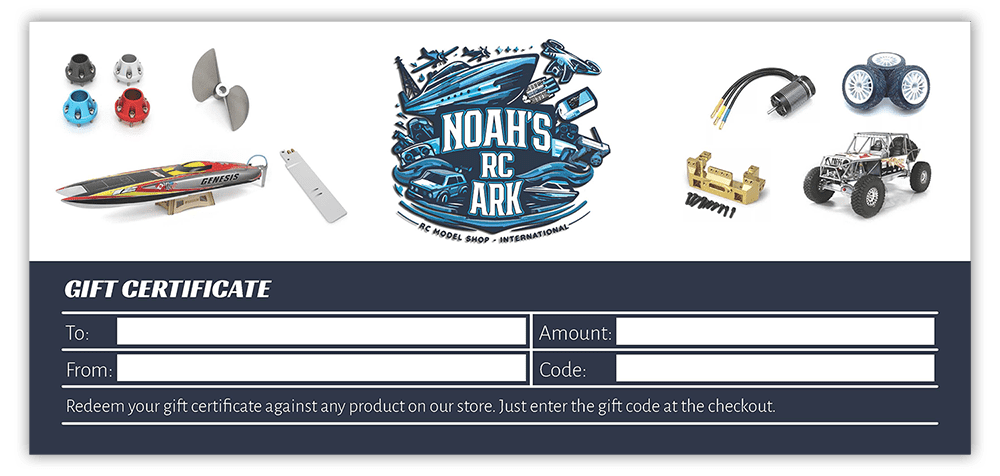 With these gift vouchers, you can surprise your fellow RC hobbyists by granting them the freedom to choose and purchase whatever suits their preferences. Whether they crave the excitement of discovering the newest RC models, enhancing their accessories, or immersing themselves in the realm of hobbyist gear, our vouchers offer the flexibility to turn their RC dreams into a reality.