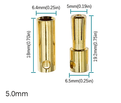 5.0mm Gold Bullet Connector (10 Pairs)