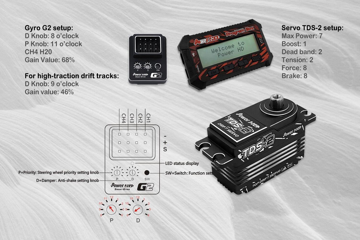 Gyro: Choose an adjustable gain gyro for consistent counter-steer and smoother drift lines.