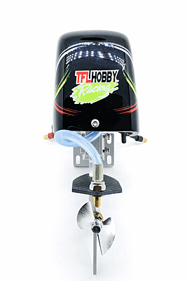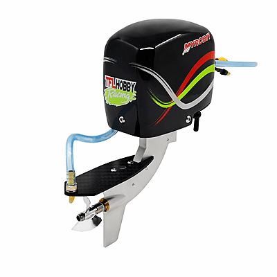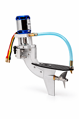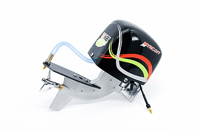 This is a complete outboard unit with mounting brackets and 3000kv outrunner motor for 2s Lipo applications. It can be used with 3s lipo power with a light weight hull in the sub 450g range. The propeller in this outboard is CNC Aluminum and driven by a flex shaft, making it smooth and efficient. The all aluminum lower unit makes for a strong, yet light weight.
