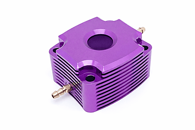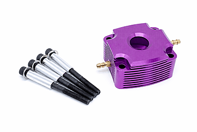 TFL's CNC'd Aluminium Water jackets come in two colours and 4 different Inlet/Outlet configurations