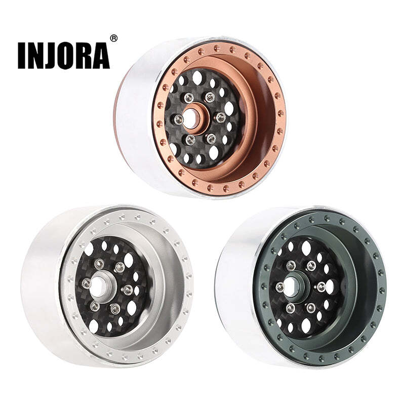 INJORA 2.2" Deep Dish Offset -10mm Carbon Fiber Aluminum Wheels for 1/10 RC Crawler (4) (W2253) (Grey)