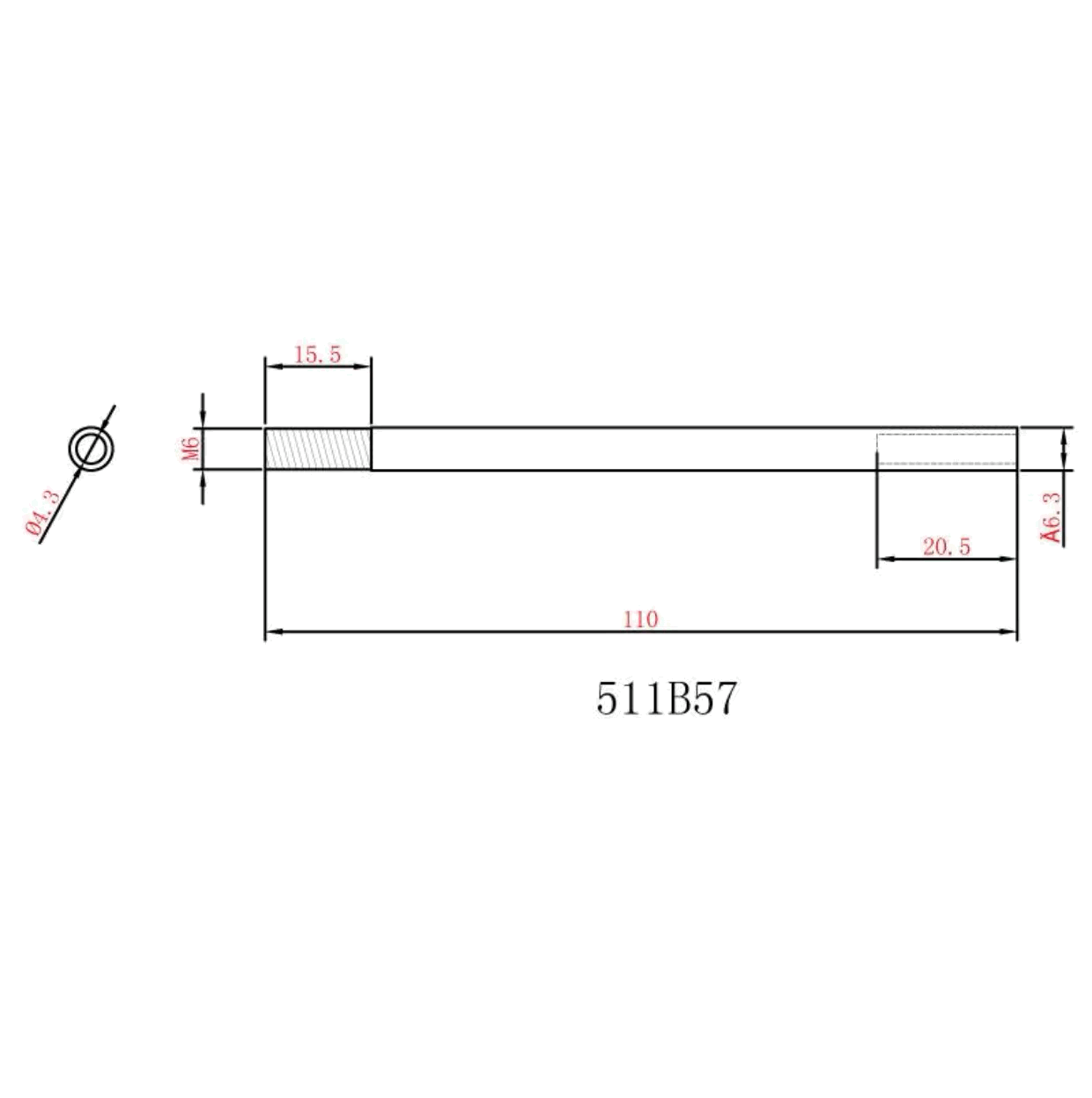 L=110mm D1=6.35mm D2=4.3mm