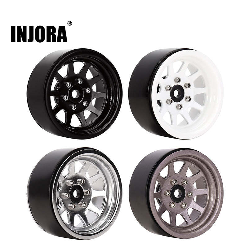INJORA 4PCS 1.9" 10-spoke Metal Beadlock Wheel Rims for 1/10 RC Crawler (09BK)