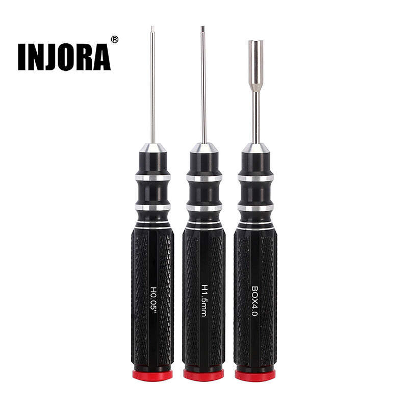 INJORA 3PCS 0.05" 1.5mm Hex & 4.0mm Nut Driver Screwdrivers RC Tool Kit for SCX24 AX24 (3PCS Screwdriver)