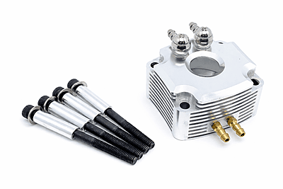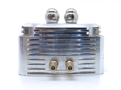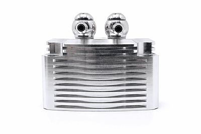 TFL's CNC'd Aluminium Water jackets come in two colours and 4 different Inlet/Outlet configurations