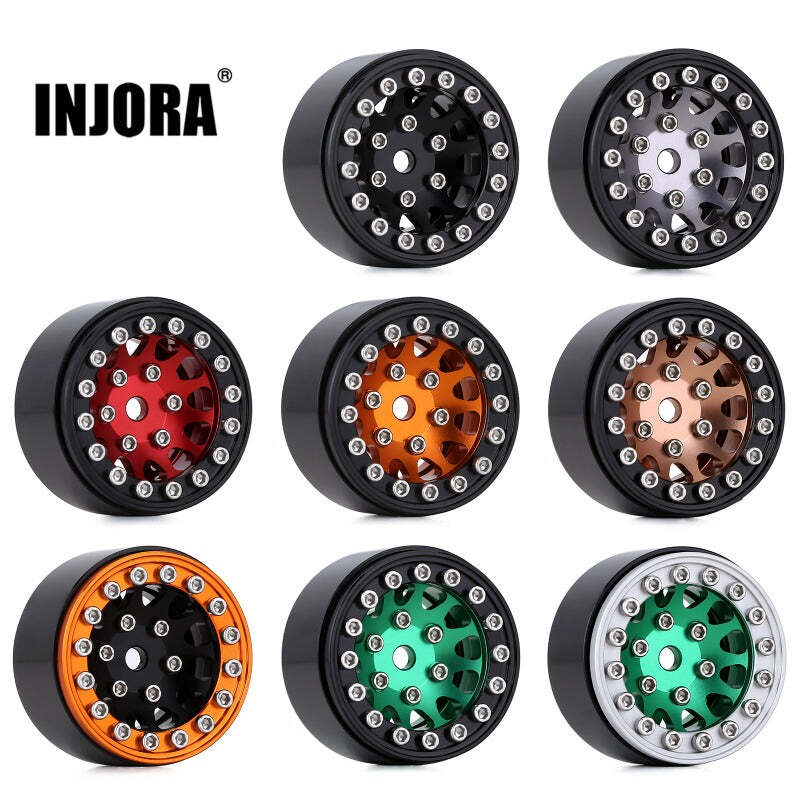 INJORA 1.0" 12-Spokes Beadlock Aluminum Wheel Rims for 1/24 RC Crawlers (4) (W1049) (Grey)